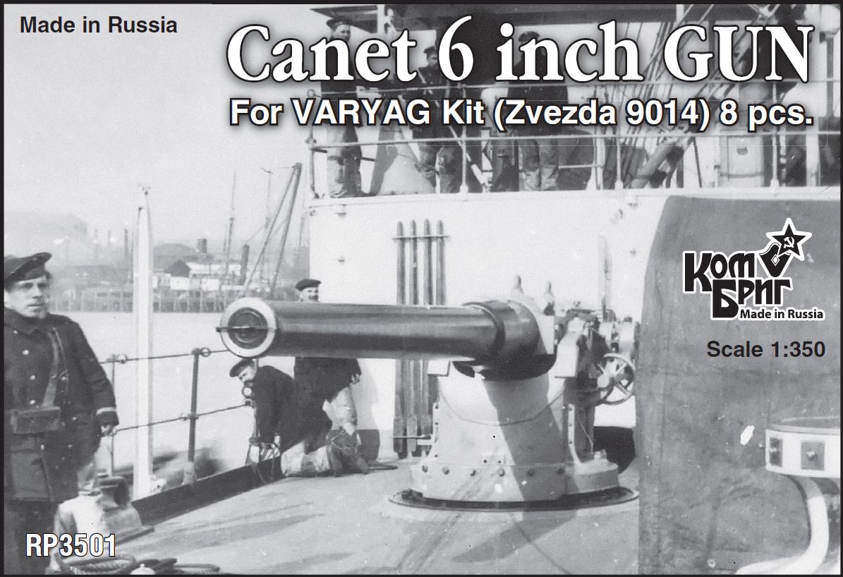 There are 8 guns in the set, each gun is made up on two parts - mount and the barrel. Gun shields are not included as Varyag didn't carry them.