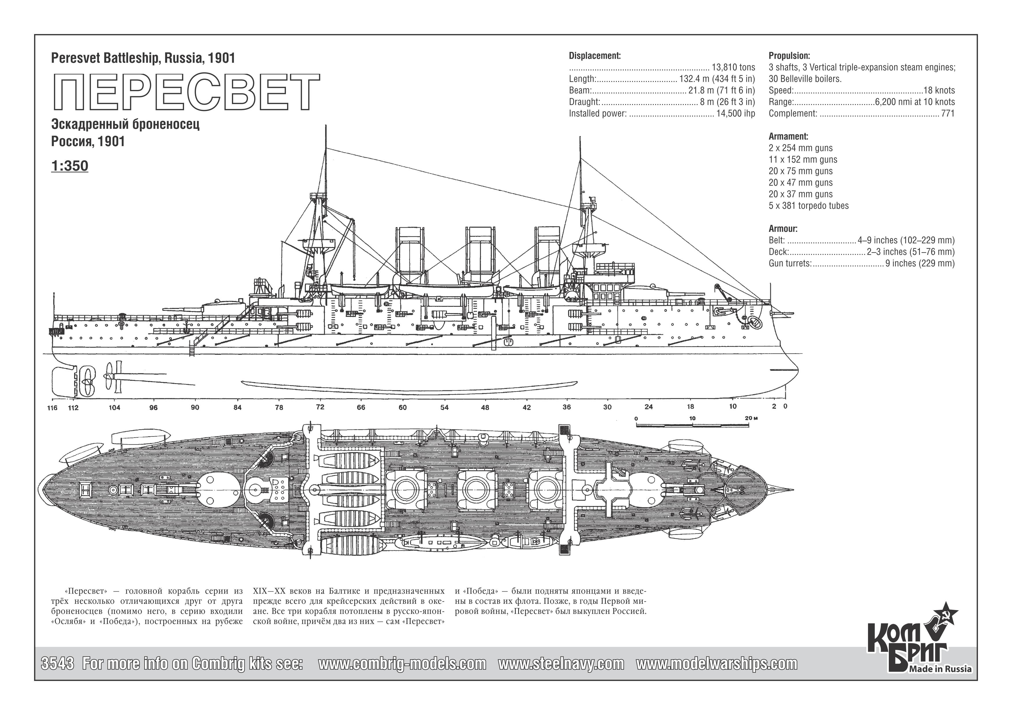 3543FH/WL - Battleship Peresvet, 1901, 1/350