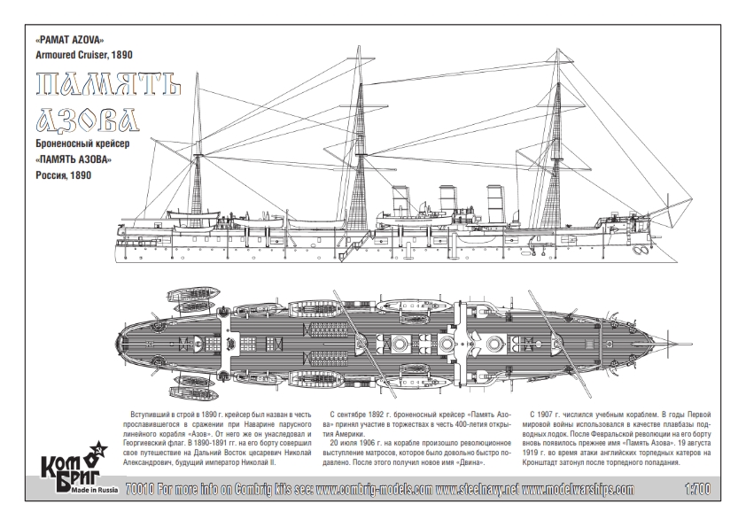 70010 - Russian Armored Cruiser Pamiat Azova, 1/700