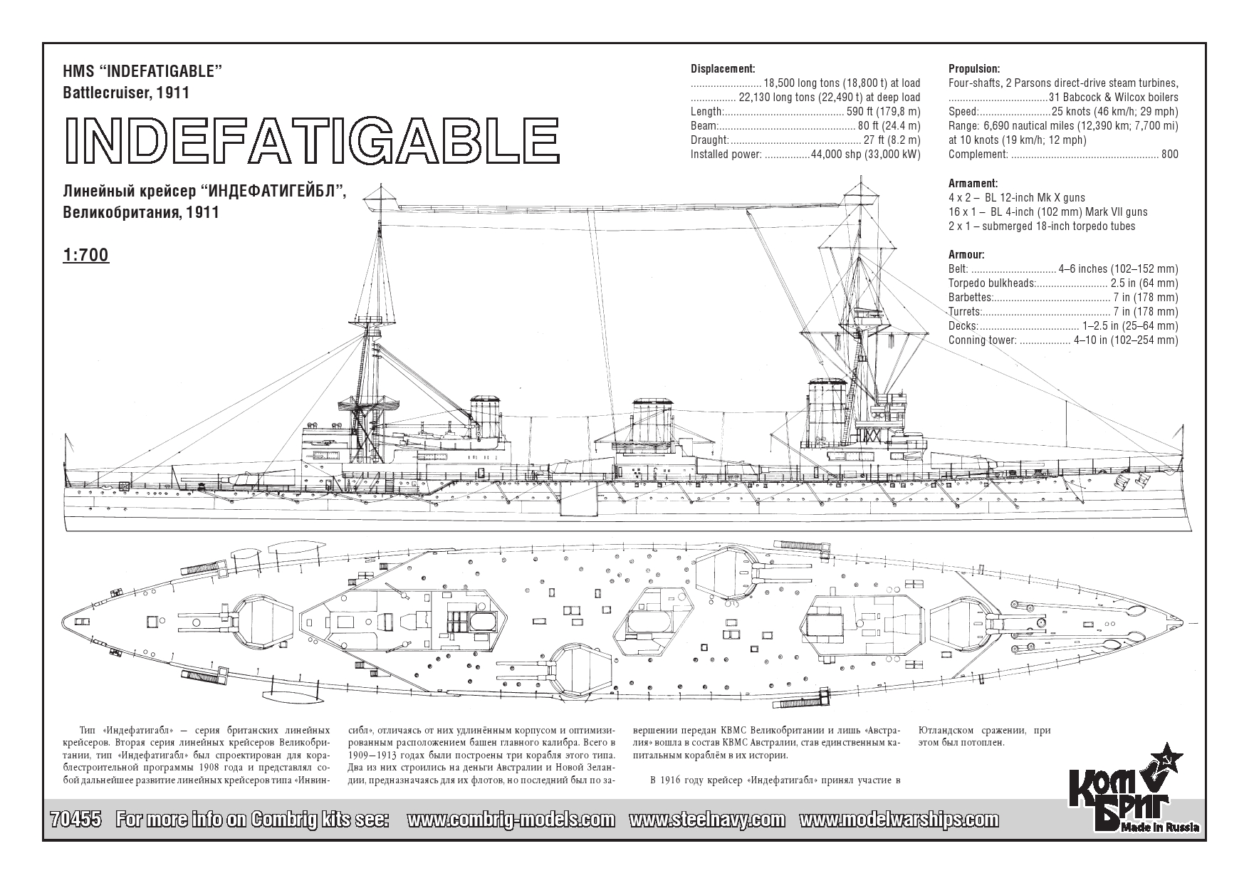 70455 - Battlecruiser HMS Indefatigable, 1911, 1/700